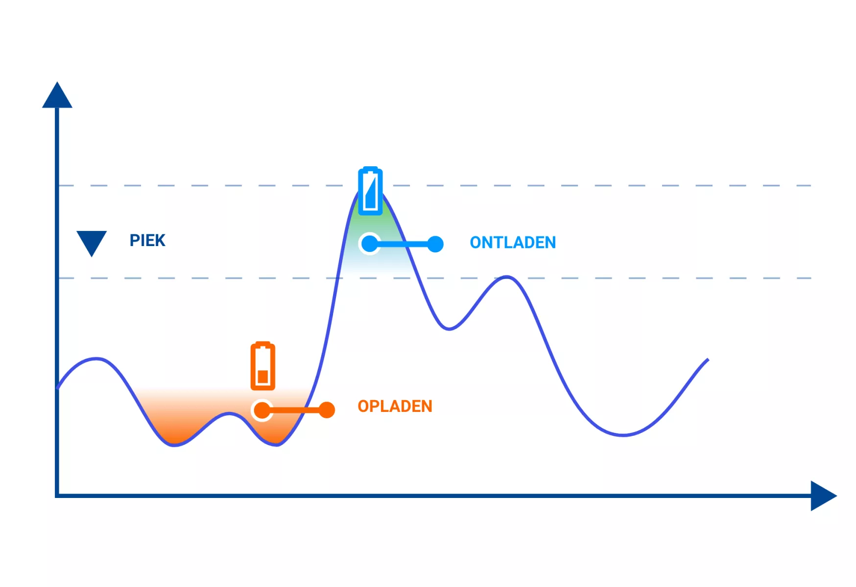 Dit wordt vaak gebruikt in de zakelijke markt, maar is ook interessant voor grotere woningen. Door hoge pieken in het verbruik of de teruglevering af te vlakken, kun je voorkomen dat je een zwaardere aansluiting op het net nodig hebt. Hiermee kan er fors worden bespaard op de jaarlijkse netwerkkosten en helpt het bij netcongestie, waardoor je toch van voldoende stroom bent voorzien zónder een extra grote aansluiting te hoeven aanvragen.