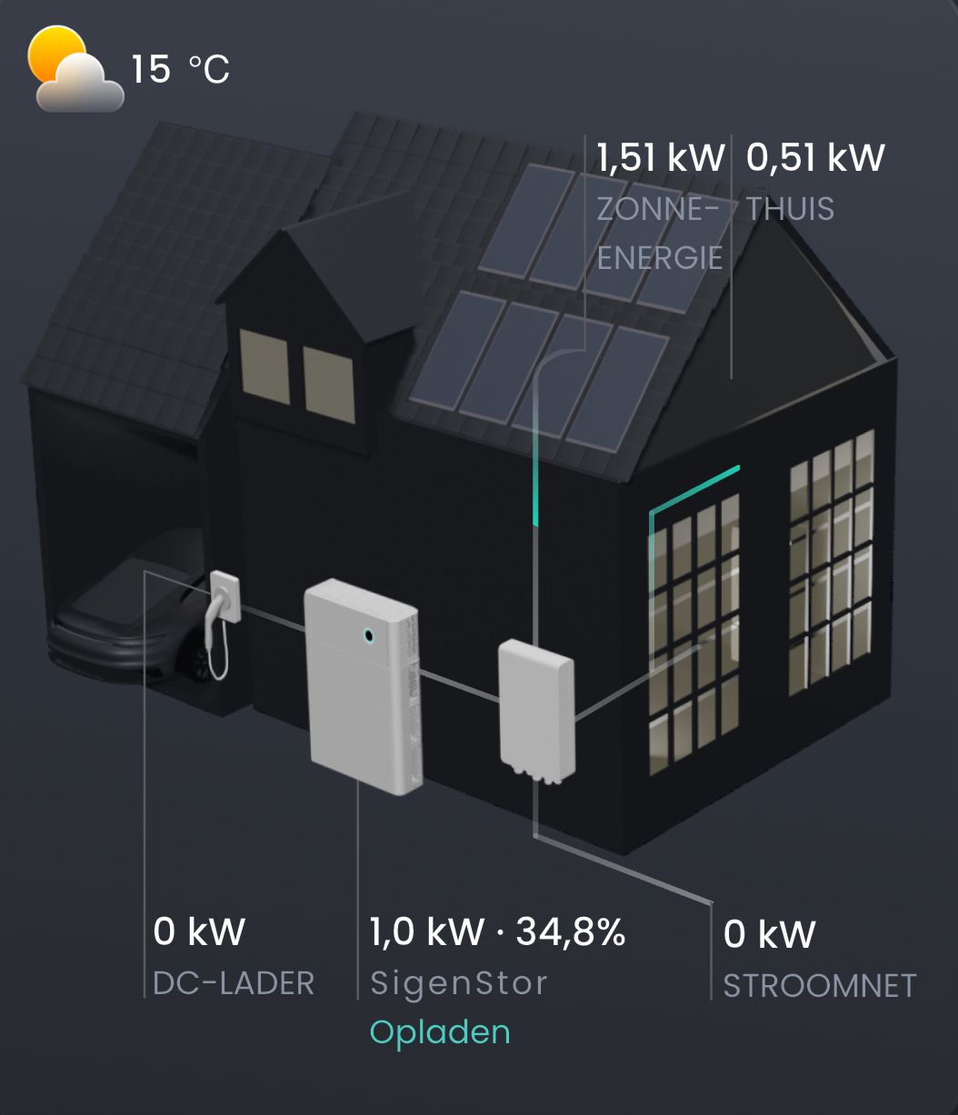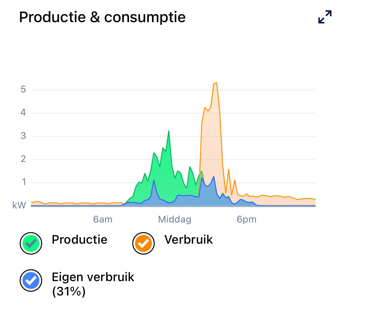 Gemiddeld verbruikt een particulier zo’n 30-35% van de opgewekte zonnestroom direct zelf. Dat betekent dat 65-70% teruggeleverd wordt wat op een ander moment weer uit het net wordt ingekocht. Enorm zonde!