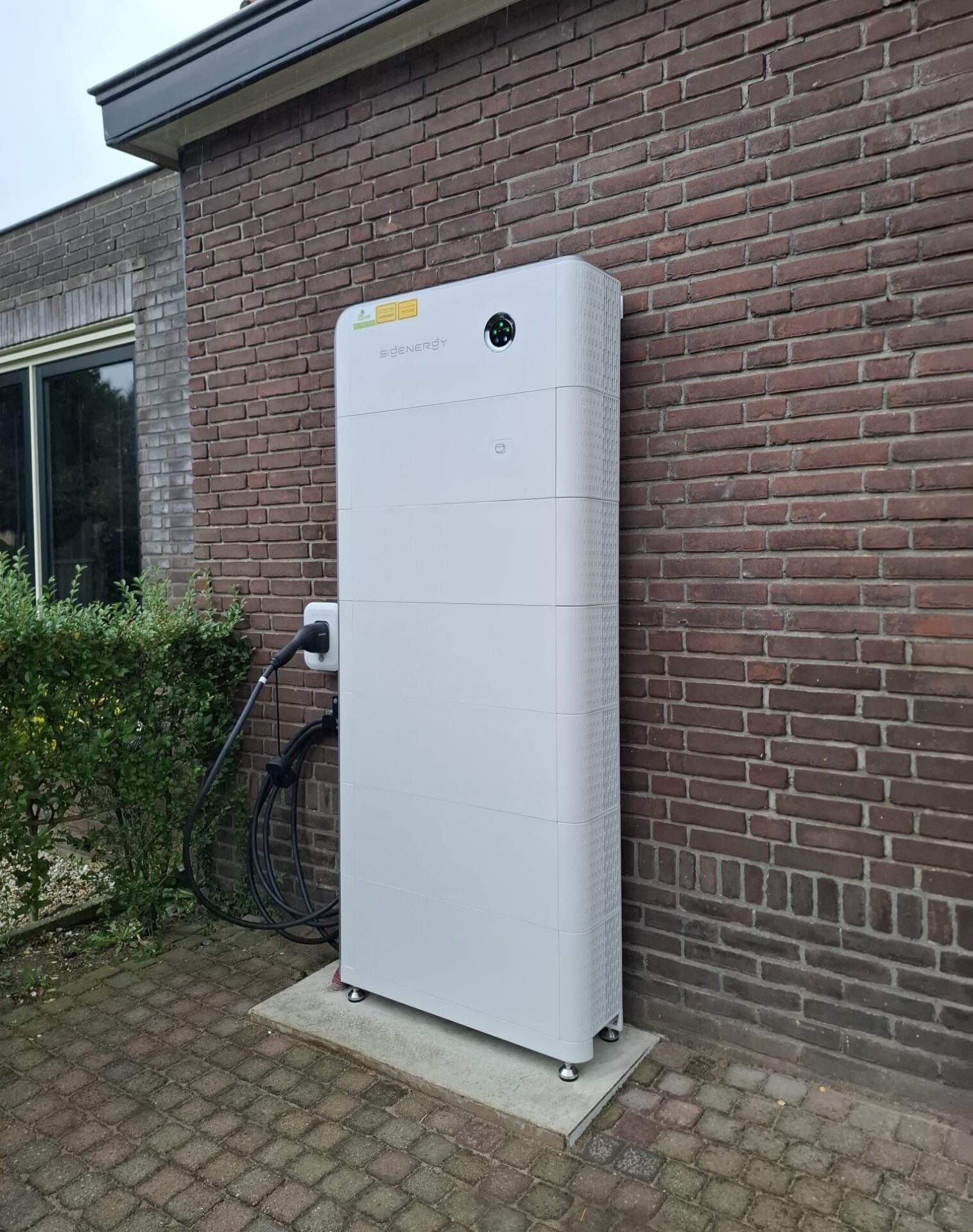 We hebben de bestaande zonnepanelen dírect op de nieuwe Sigenergy hybride omvormer aangesloten. Zo houden we alles DC-gekoppeld en beperken we omvormverliezen. Wanneer de auto of bedrijfsbus aan het laden is gaat de zonnestroom hier direct naartoe, zónder de omvormverliezen die je met een normale laadpaal hebt. Tevens kan de klant zijn nieuwe ID Buzz gebruiken om zijn huis te voeden of zelfs terug te leveren aan het net via de bi-directionele laadstand van de DC-lader. Eén van de weinige systemen in Nederland die dit daadwerkelijk in de praktijk mogelijk maakt momenteel!